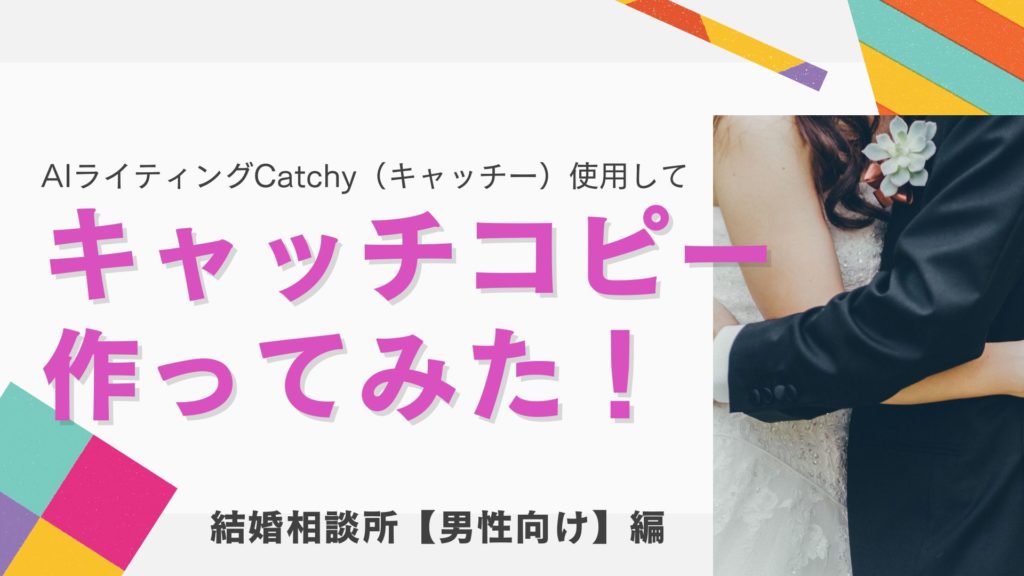 今回はそんなCatchyを使って、“結婚相談所【男性向け】”のキャッチコピーを作ってみました。