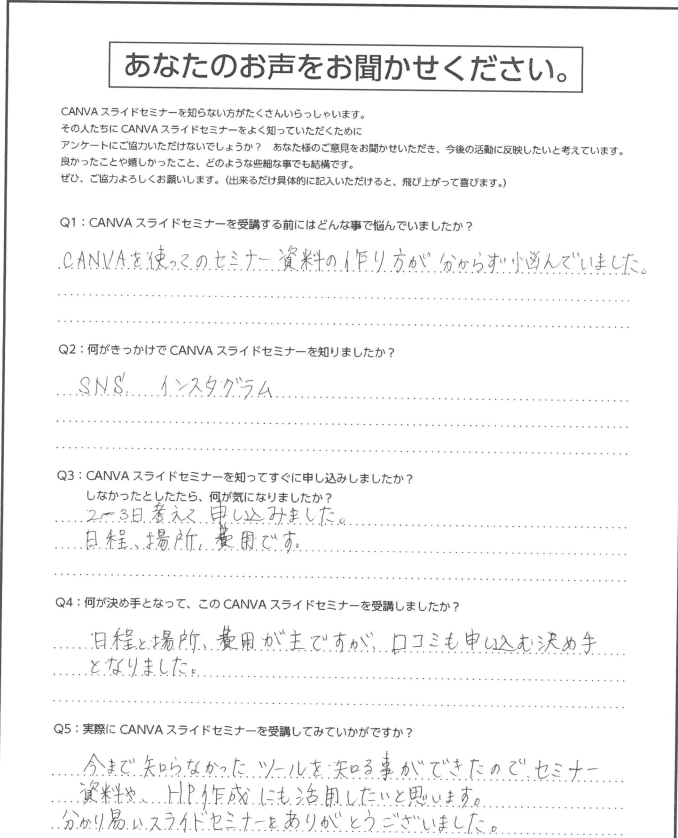Q5・実際にcanvaスライドセミナーを受講してみていかがですか?