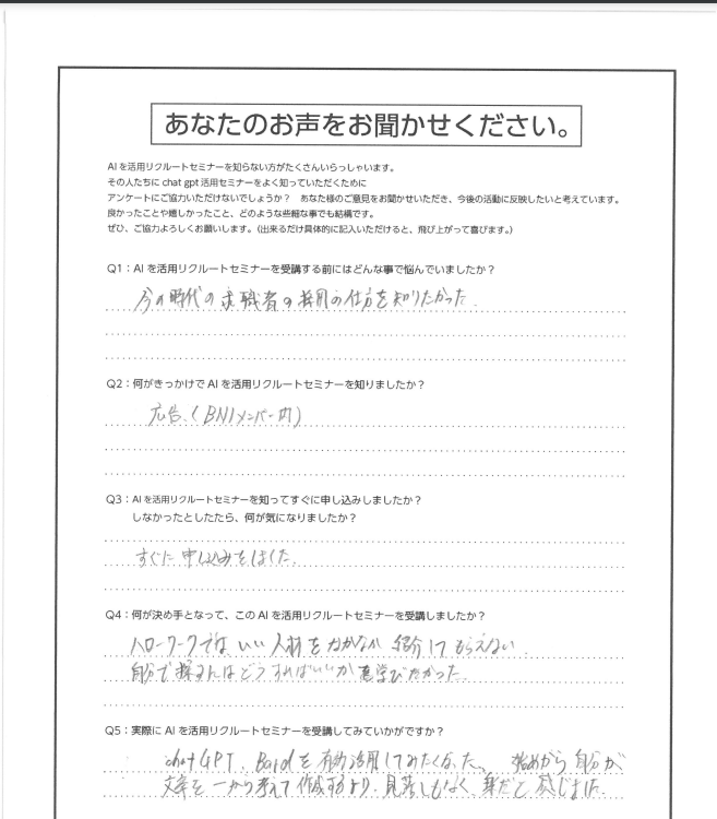 Q5:実際にAIを活用リクルートセミナーを受講してみていかがですか?