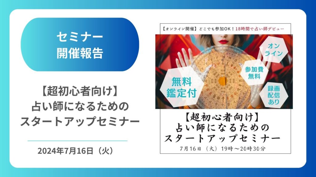 2024年7月16日(火)、USPプロファイラー:忍足 幸三さんをお迎えし、【超初心者向け】占い師になるためのスタートアップセミナーを開催しました。