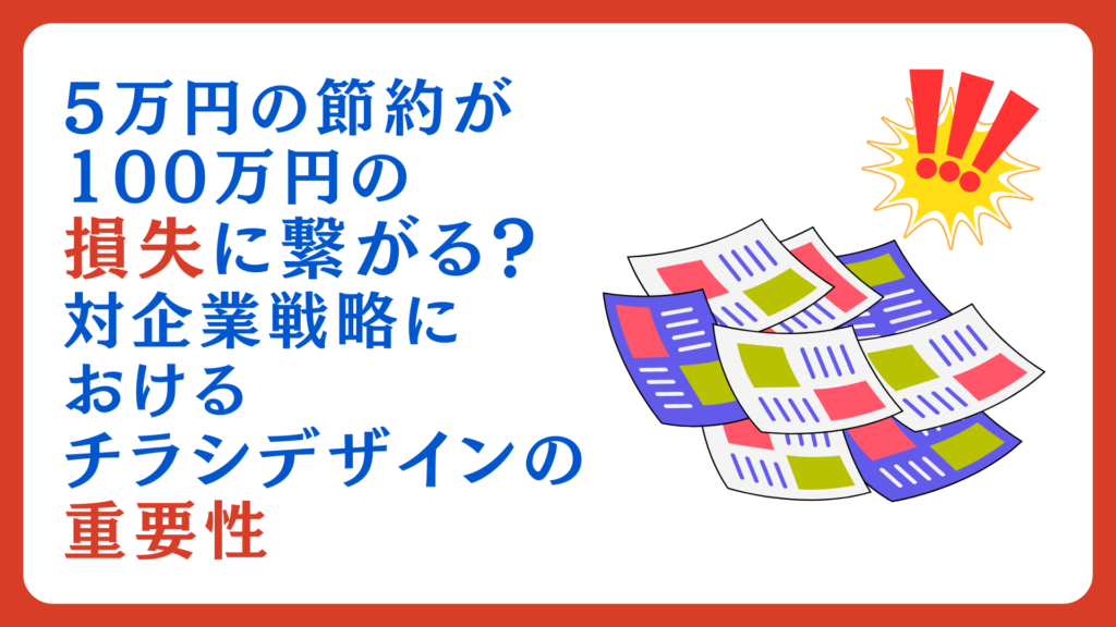企業との取引において、チラシは重要な営業ツールの一つです。しかし、コスト削減のためにデザインをケチってしまうと、かえって逆効果になり、受注獲得を逃してしまう可能性があります。今回は、対企業戦略におけるチラシデザインの重要性について、5万円の節約が100万円の損失に繋がるケースを例に説明します。