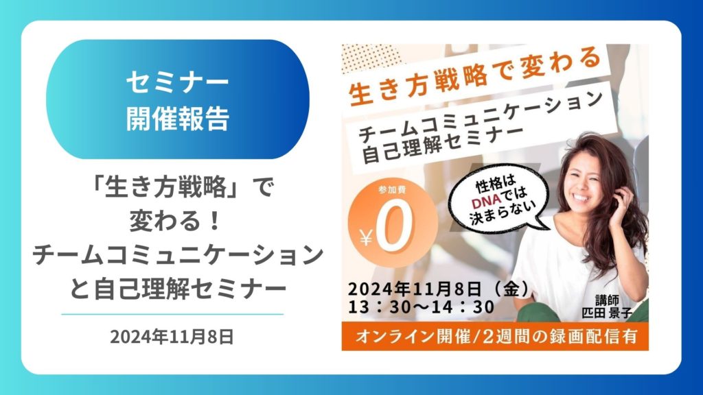 タイトル:「生き方戦略」で変わる!チームコミュニケーションと自己理解セミナー
