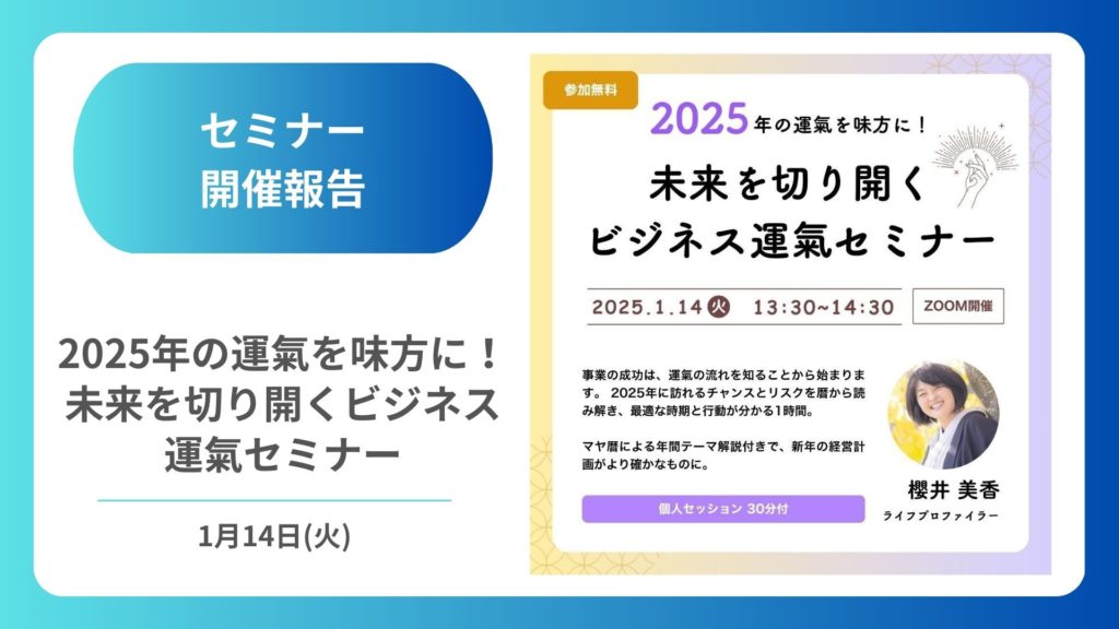 2025年1月14日、櫻井 美香をお迎えし、2025年の運氣を味方に!未来を切り開くビジネス運氣セミナー