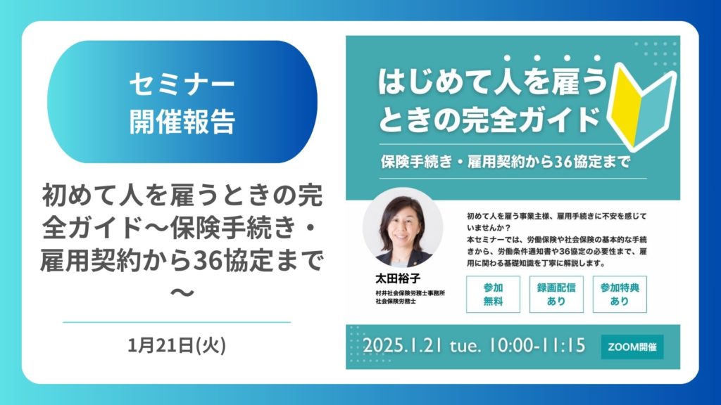2025年1月21日 、太田裕子をお迎えし、初めて人を雇うときの完全ガイド~保険手続き・雇用契約から36協定まで~