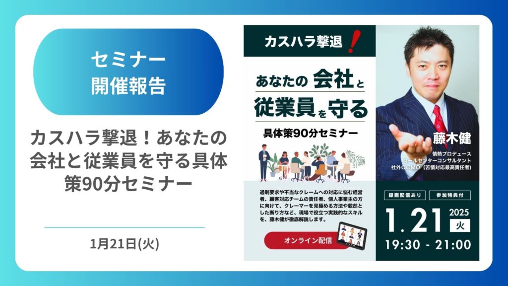 2025年1月21日、藤木健氏をお迎えし、カスハラ撃退!あなたの会社と従業員を守る具体策90分セミナー