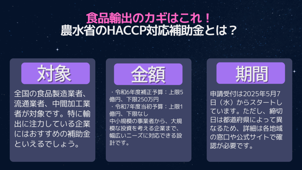 最大5億円の支援!令和7年度「HACCP等対応施設整備事業」がスタート