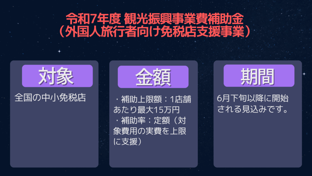 令和7年度 観光振興事業費補助金(外国人旅行者向け免税店支援事業)
