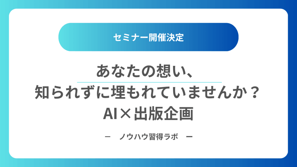 このオンラインセミナーでは、AIを活用しながら「自分の強み」を見つけ、本のタイトルや企画の骨子を一緒に考えていきます。特別な知識や技術がなくても大丈夫。