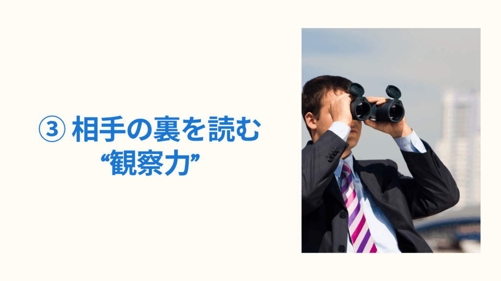 こうした“察する力”があると、取引や営業の成功率がグンと上がります。
