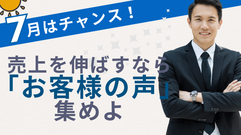 今回は、なぜ7月が「お客様の声」を集めるベストタイミングなのか、そしてどうやってその声を販促に活かすか、3つのポイントに分けてわかりやすくお伝えします!