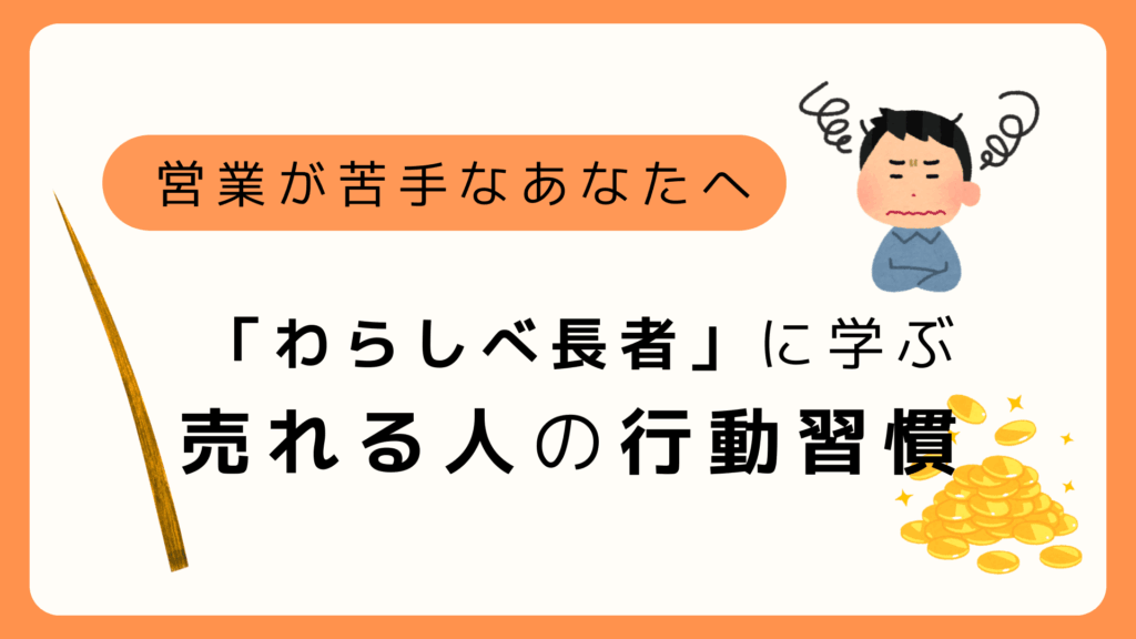 今日は、営業がちょっと苦手…というあなたのために、わらしべ長者の物語から学べる“売れる行動”のヒントを3つ、お伝えします。