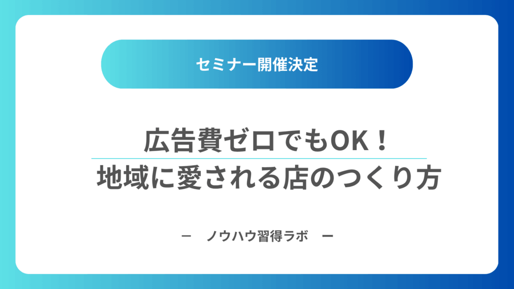 そんな悩みを抱える小さなお店のために、広告に頼らず“選ばれるお店”になる方法を学べるセミナーが開催されます。