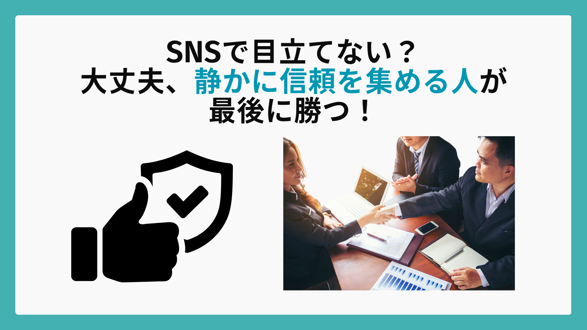 むしろ、今の時代においては、静かに努力する人のほうが信頼されるチャンスが大きいんです。