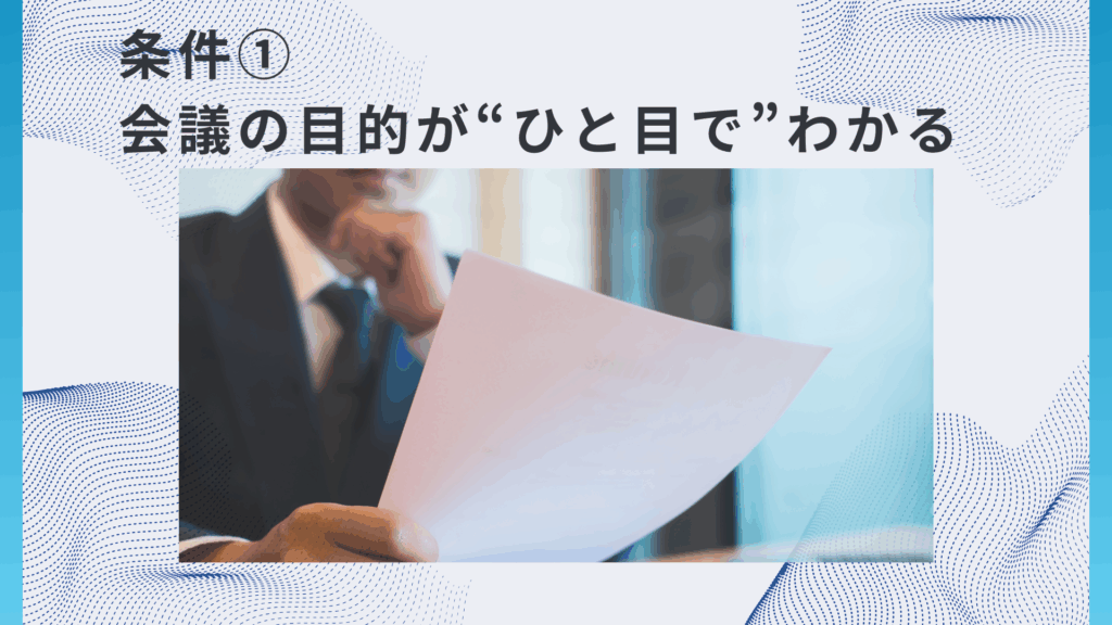 条件① 会議の目的が“ひと目で”わかる