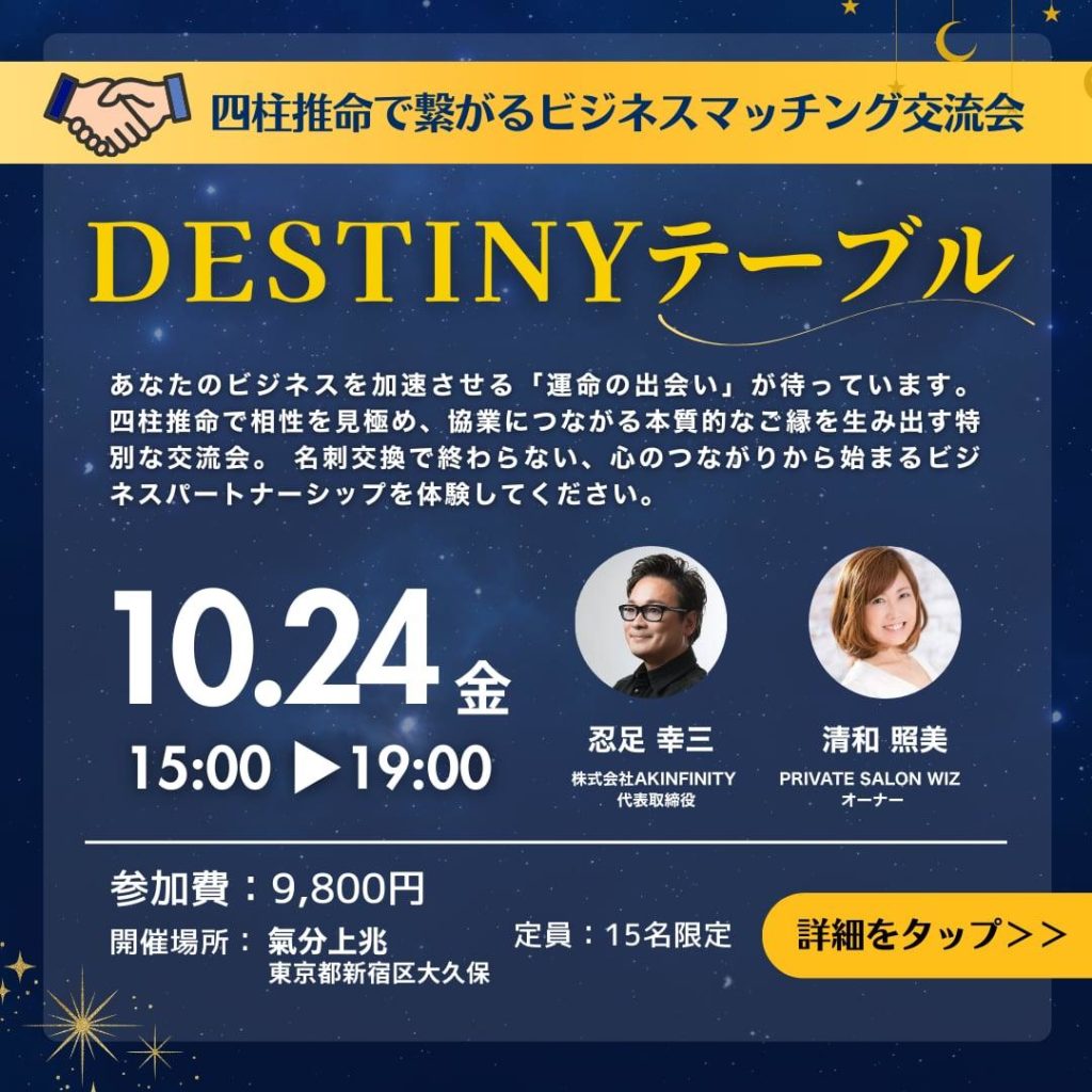運命をつかむ!相性と強みでつながる、特別なビジネスマッチング交流会 DESTINYテーブル