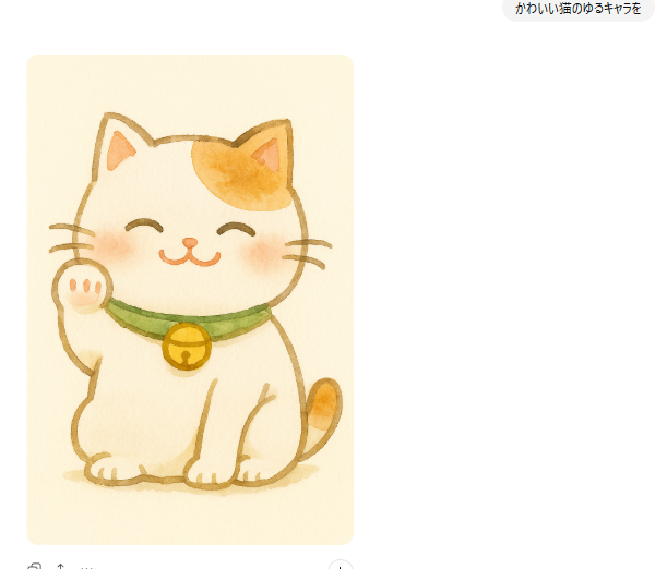 • オリジナルキャラ:「かわいい猫のゆるキャラを」で、グッズに使えるデザインに。