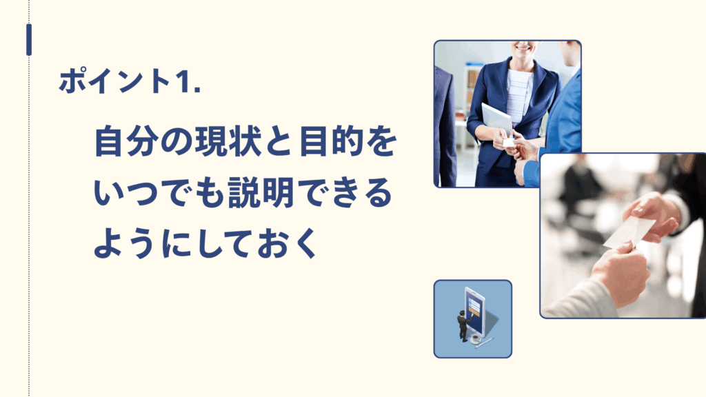 ポイント1:自分の現状と目的をいつでも説明できるようにしておく