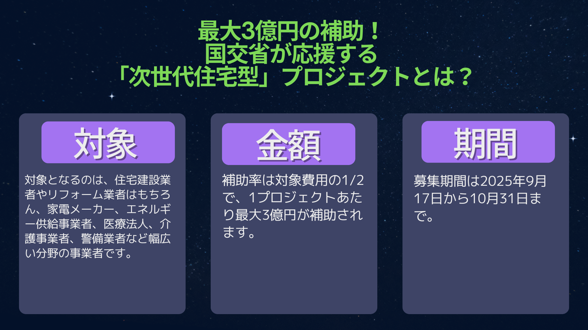 補助金・助成金情報次世代住宅プロジェクト2025とは?IoTで未来の住まいを実現する補助制度 国土交通省が進める「次世代住宅プロジェクト2025」は、住宅分野における最先端技術を取り入れ、私たちの暮らしをより快適で安心なものにする取り組み...