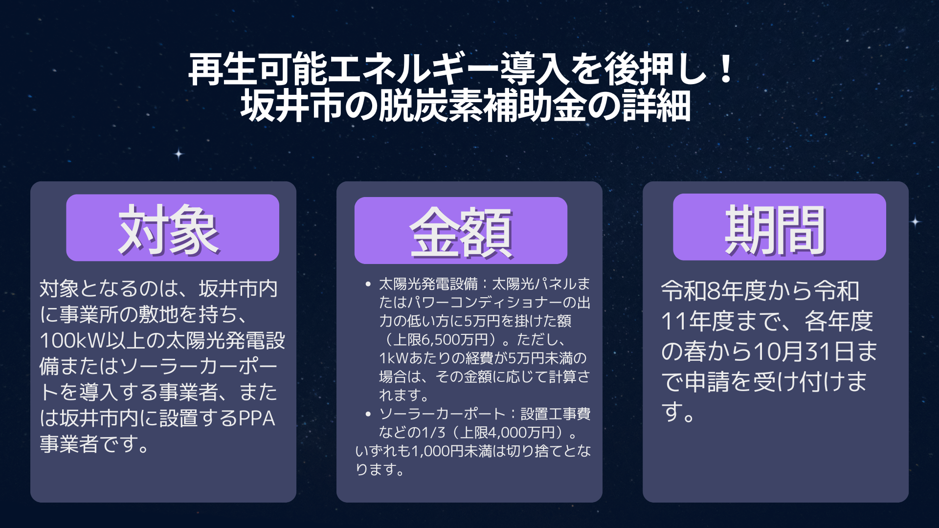坂井市で太陽光発電・ソーラーカーポートを導入する事業者向け補助金制度