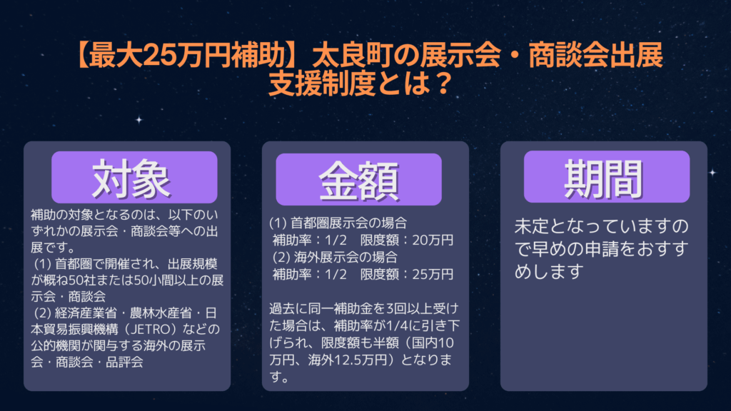 太良町の「展示会・商談会出展支援補助金」を活用し、地域の枠を越えて販路を広げてみませんか。