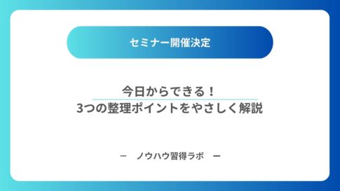 セミナー開催準備中~仕事も家事もサクサク進む3大整理術〜 今日からできる!3つの整理ポイントをやさしく解説 仕事も家事もサクサク進む3大整理術 は、「毎日が忙しくて片づけまで手が回らない」「頑張っているのにうまくいかない…」という女性のた...