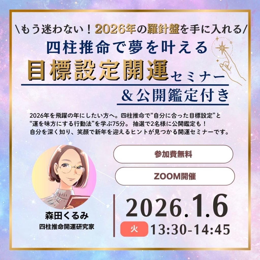 ~もう迷わない!2026年の羅針盤を手に入れる。四柱推命で夢を叶える目標設定開運セミナー&公開鑑定付き〜