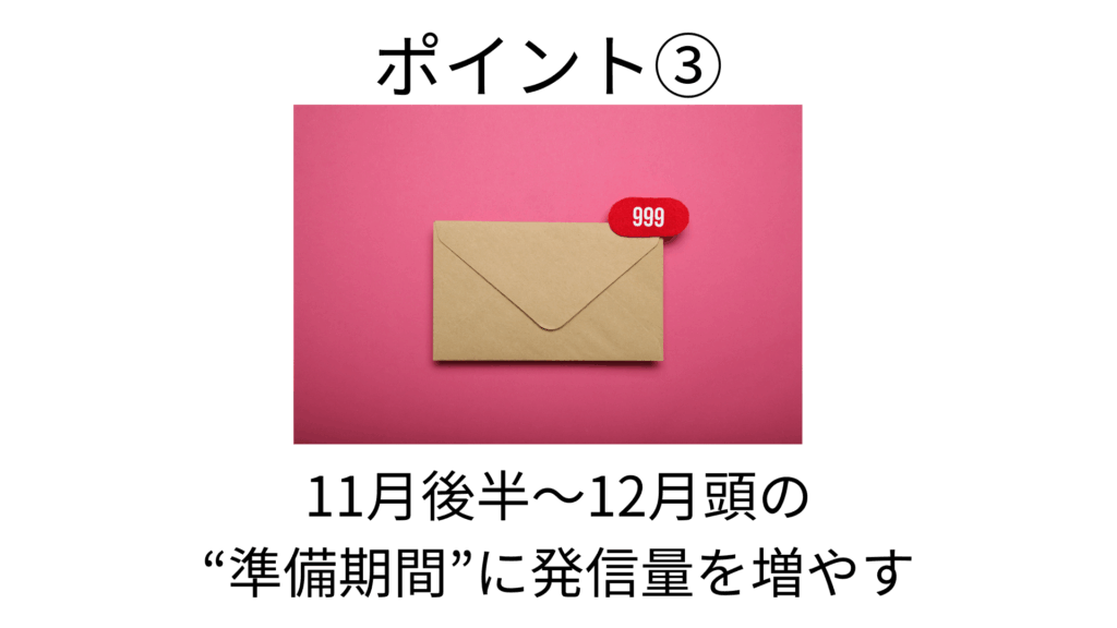 ポイント3|11月後半〜12月頭は“準備期間”。発信量を増やす