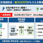 対象期間は令和8年2月27日までとなっている。補助金の募集期間は「お問い合わせください」とされており、正式な募集時期は担当部署に確認する必要がある。