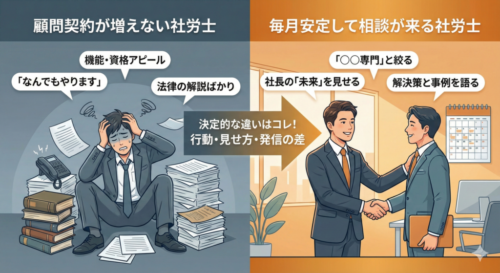 実は、安定して顧客を獲得している社労士と、そうでない社労士には、