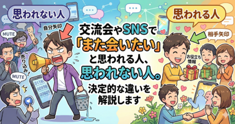 イベント・セミナー開催の仕方交流会やSNSで「また会いたい」と思われる人、思われない人。決定的な違いを解説します こんにちは、販促工房の笹野です。 毎日お仕事、本当にお疲れ様です。 個人事業主として活動していると、どうしても避けて通れないのが「集客...