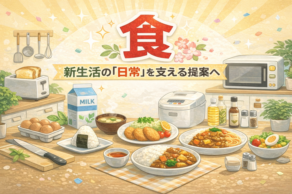 ここでは、2026年4月の販促を「食」「衣料」「雑貨」の3つのカテゴリに分けて、考え方と具体的なポイントを整理していきます。