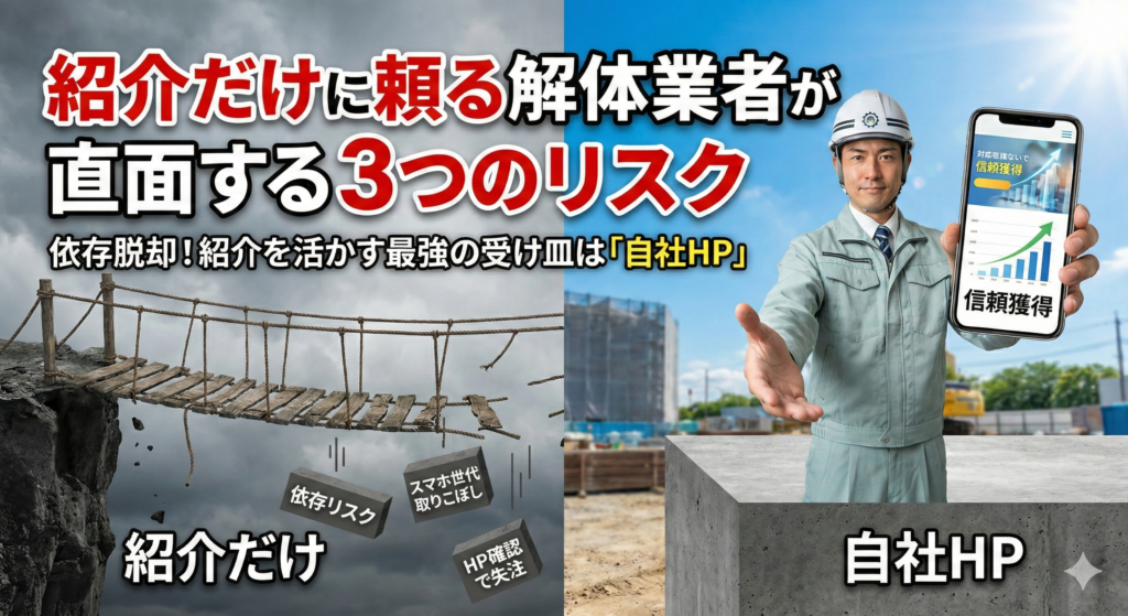 確かに、解体業において不動産会社や建設会社からの「紹介」は非常に強力な集客手段であり、信頼の証でもあります。これまで業界を支えてきたのは、間違いなくこうした人と人との繋がりです。