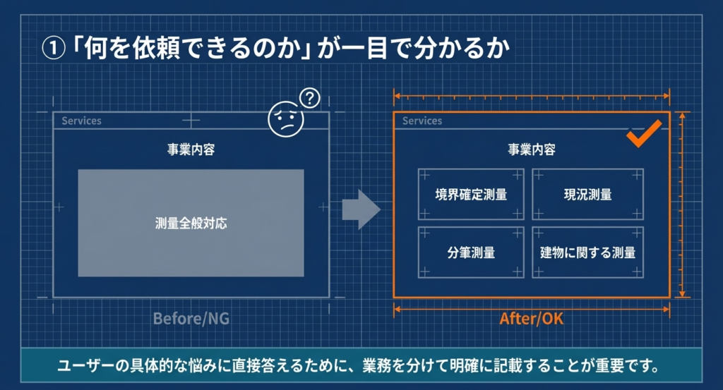①「何を依頼できるのか」が一目で分かるか
