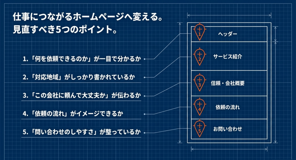 問い合わせにつながるホームページにするために、最初に見直すべきポイントを解説します。