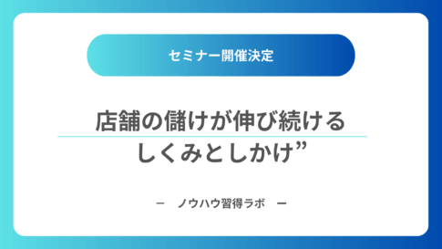 セミナー開催準備中店舗経営をしていて、こんな悩みはありませんか? さらに、こんな気持ちになったことはありませんか? 多くの経営者さんが抱えているこのような悩みは、実は“しくみ”と“しかけ”を知らないことが原因かもしれません。逆に言えば、こ...