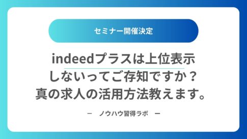 セミナー開催準備中~indeedプラスは上位表示しないってご存知ですか?真の求人の活用方法教えます。~ 目次 求人広告にお金をかけず、成果を出す方法とは? セミナー概要 講座で学べること セミナーの対象者 講師プロフィール 参加特典 おわ...