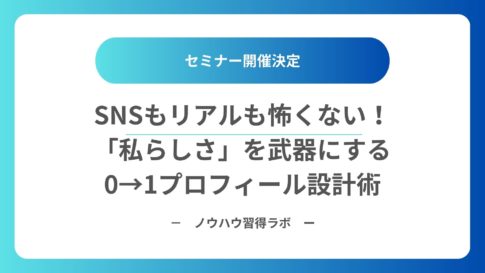 セミナー開催準備中〜SNSもリアルも怖くない!「私らしさ」を武器にする0→1プロフィール設計術〜 「実績がない」「伝え方がわからない」と悩む起業初心者やフリーランスの方に向けたセミナーです。 本講座では、相手に伝わるプロフィールの“土台設...